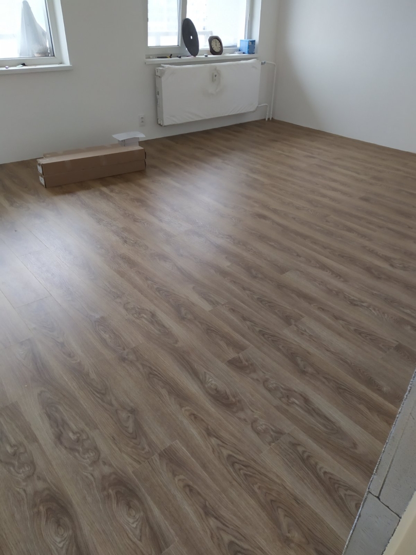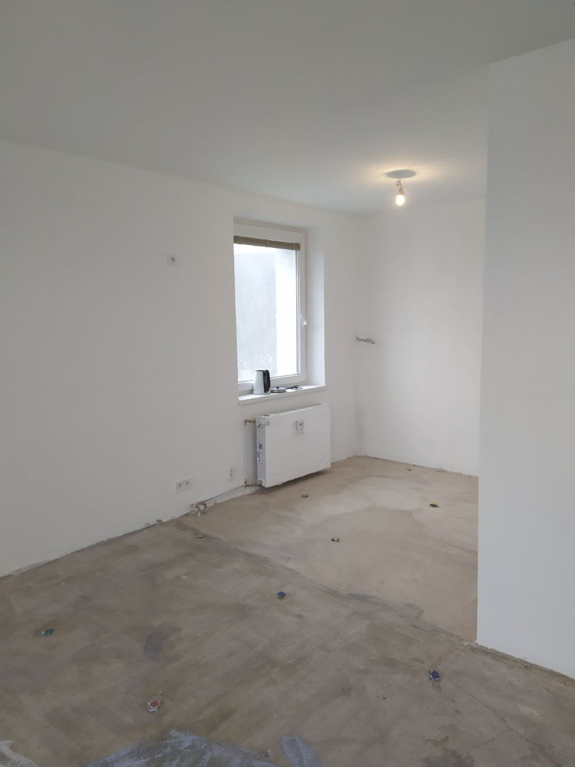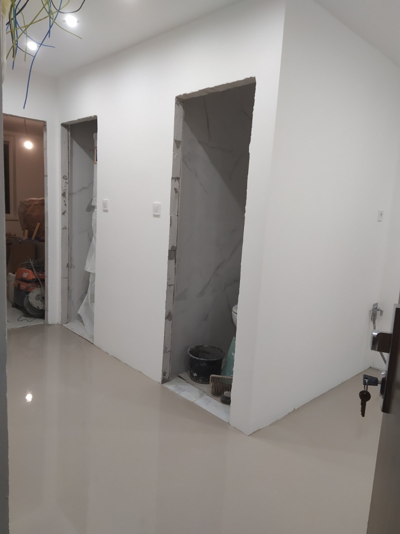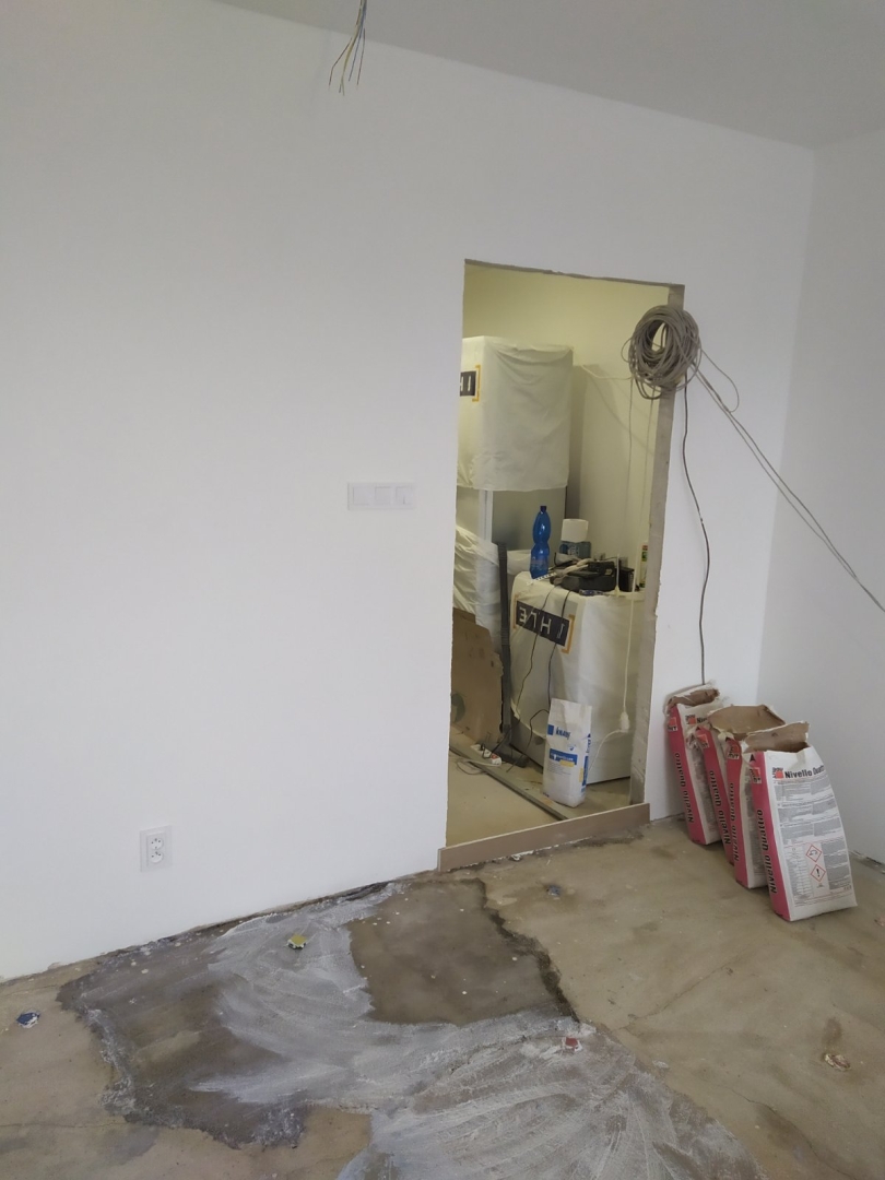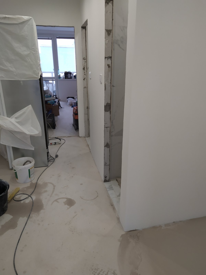 V tejto zákazke bola požiadavka na dokonale rovnú podlahu na chodbe a obývačke s kuchyňou, nakoľko sme dodávali a lepili vinylovú podlahu. Všetky V procese - Jadro V procese - steny, elektroinštalácia Podlahy Finálny stav