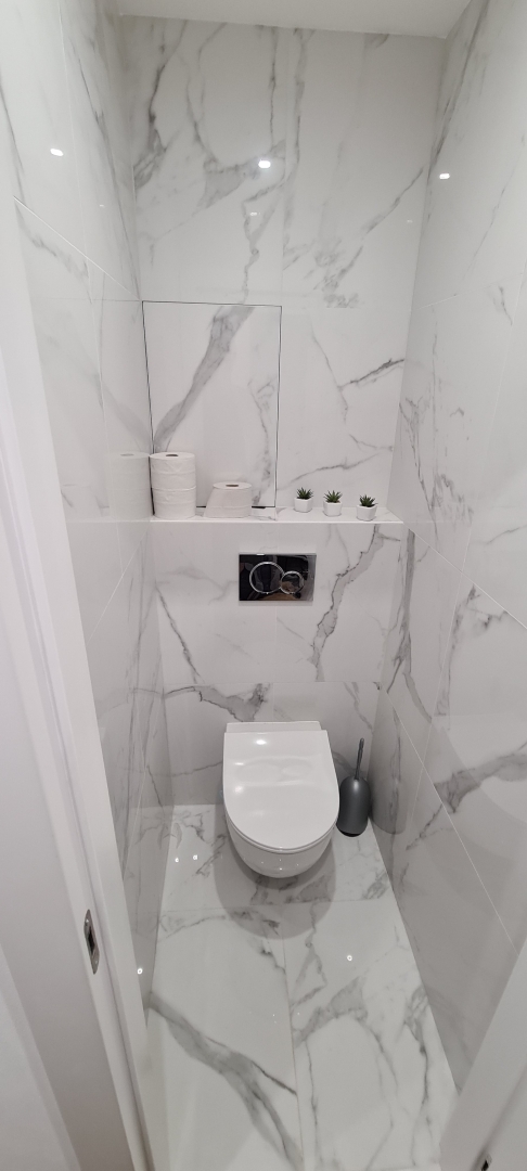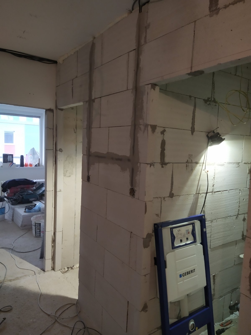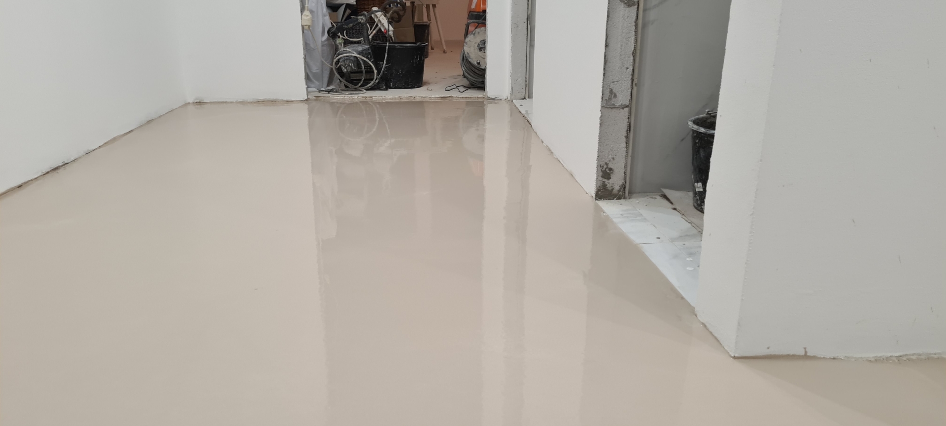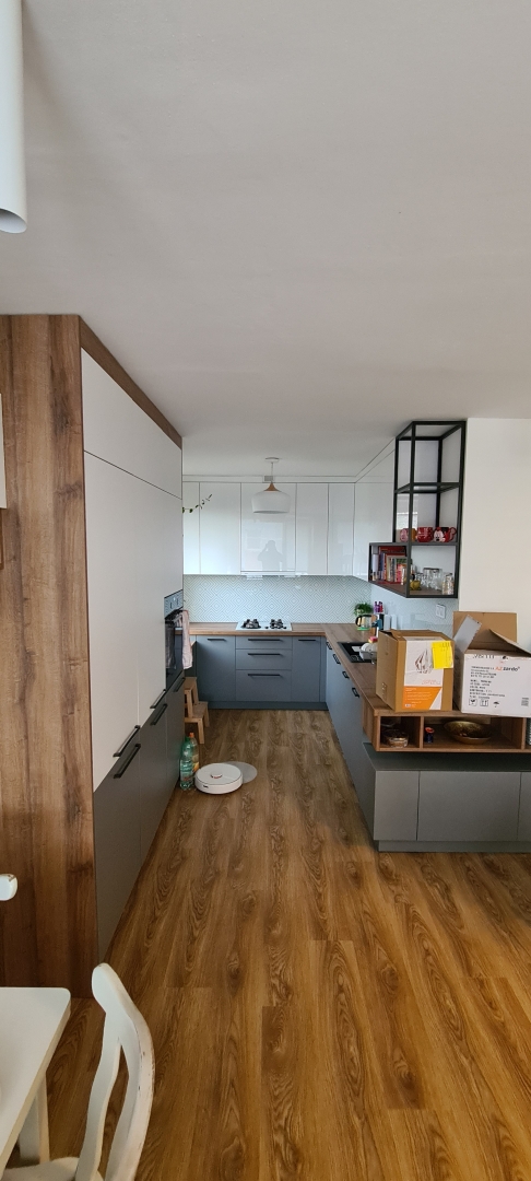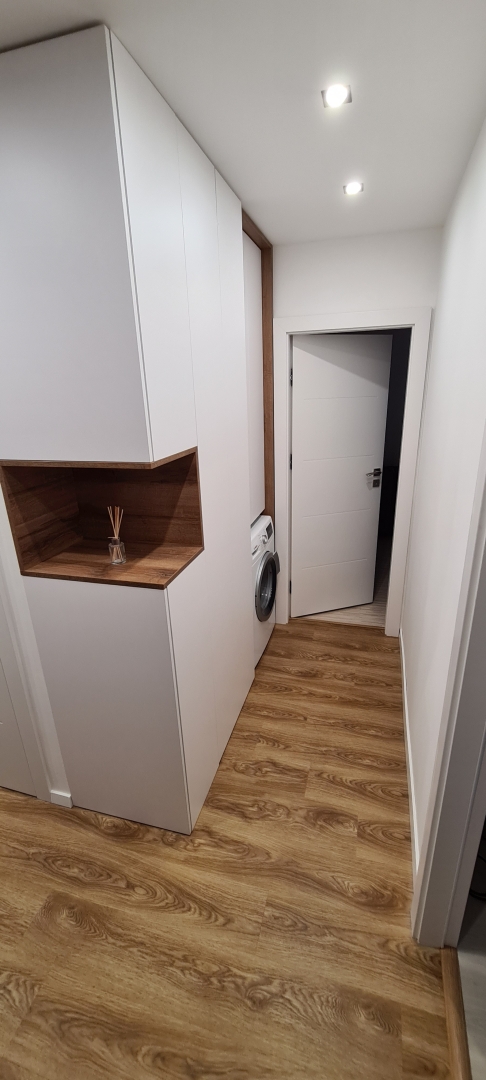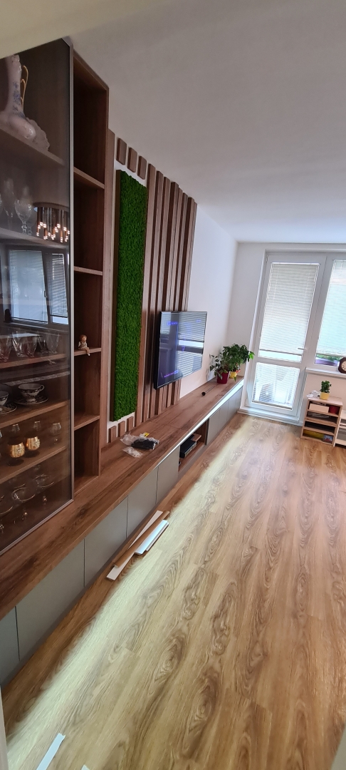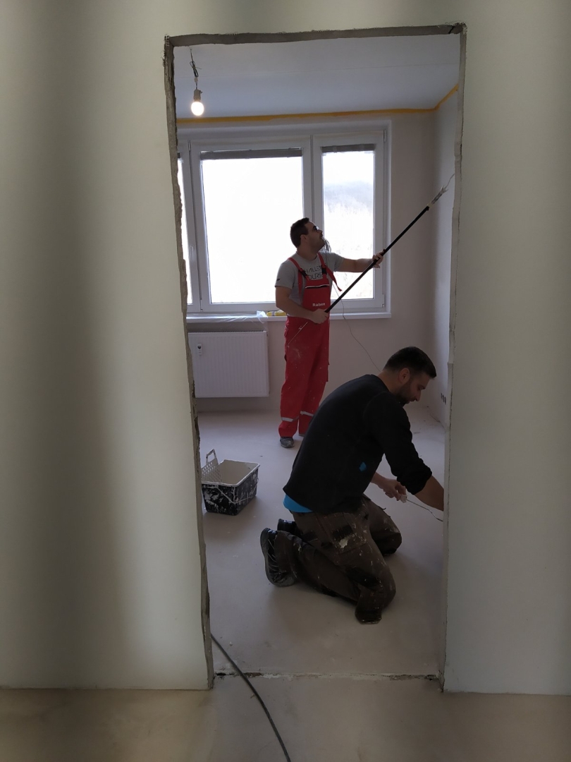 V tejto zákazke bola požiadavka na dokonale rovnú podlahu na chodbe a obývačke s kuchyňou, nakoľko sme dodávali a lepili vinylovú podlahu. Všetky V procese - Jadro V procese - steny, elektroinštalácia Podlahy Finálny stav
