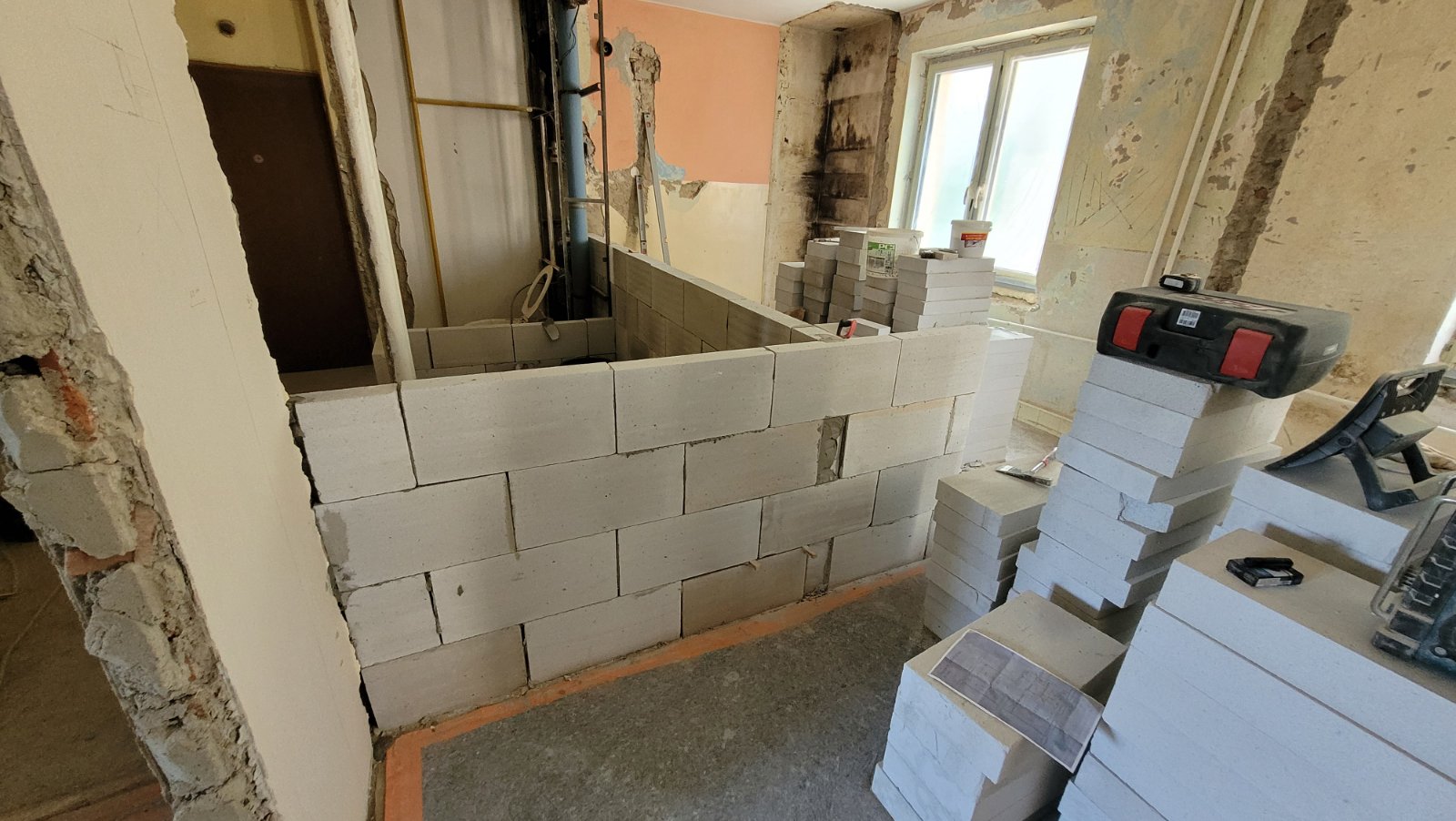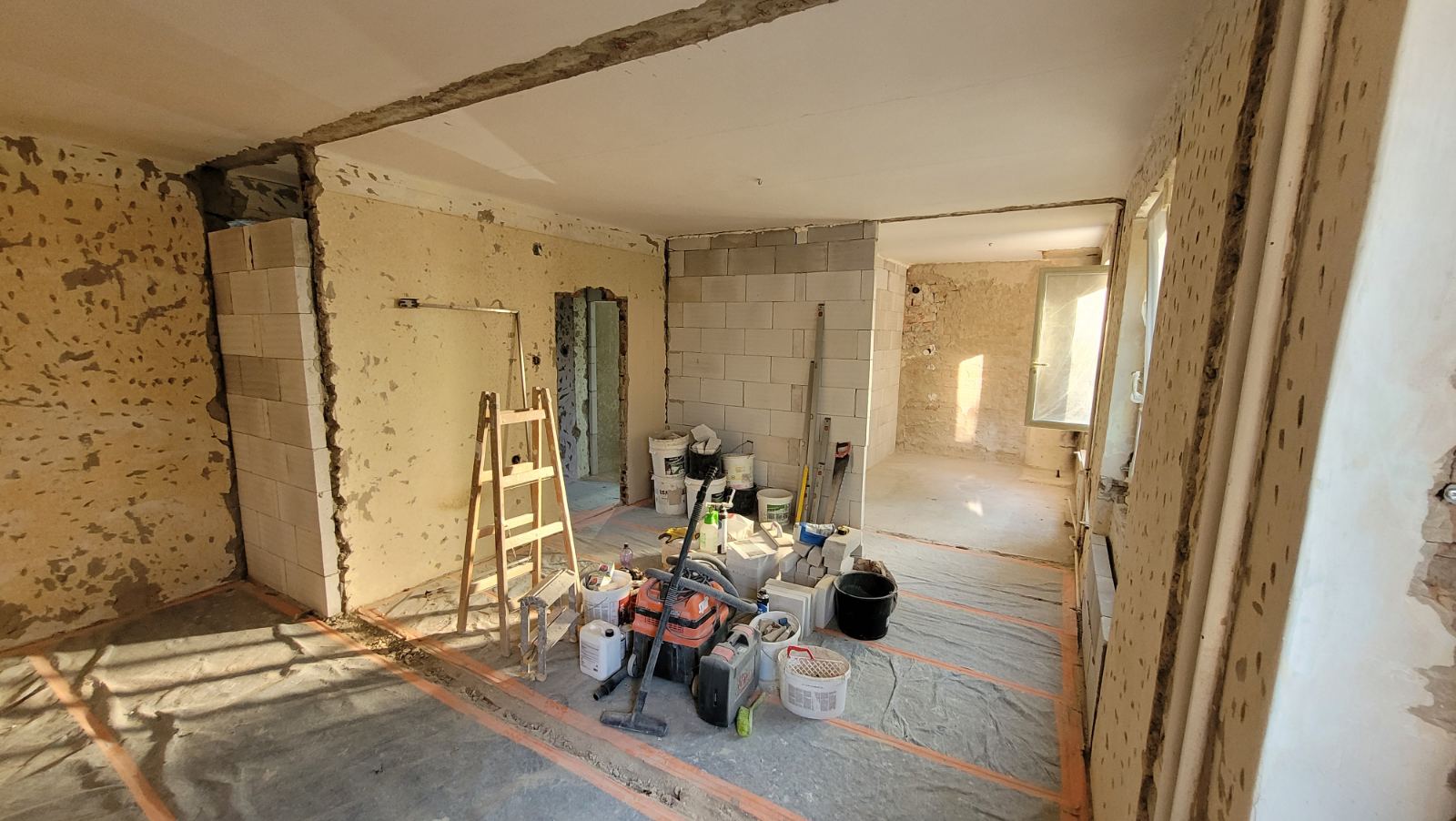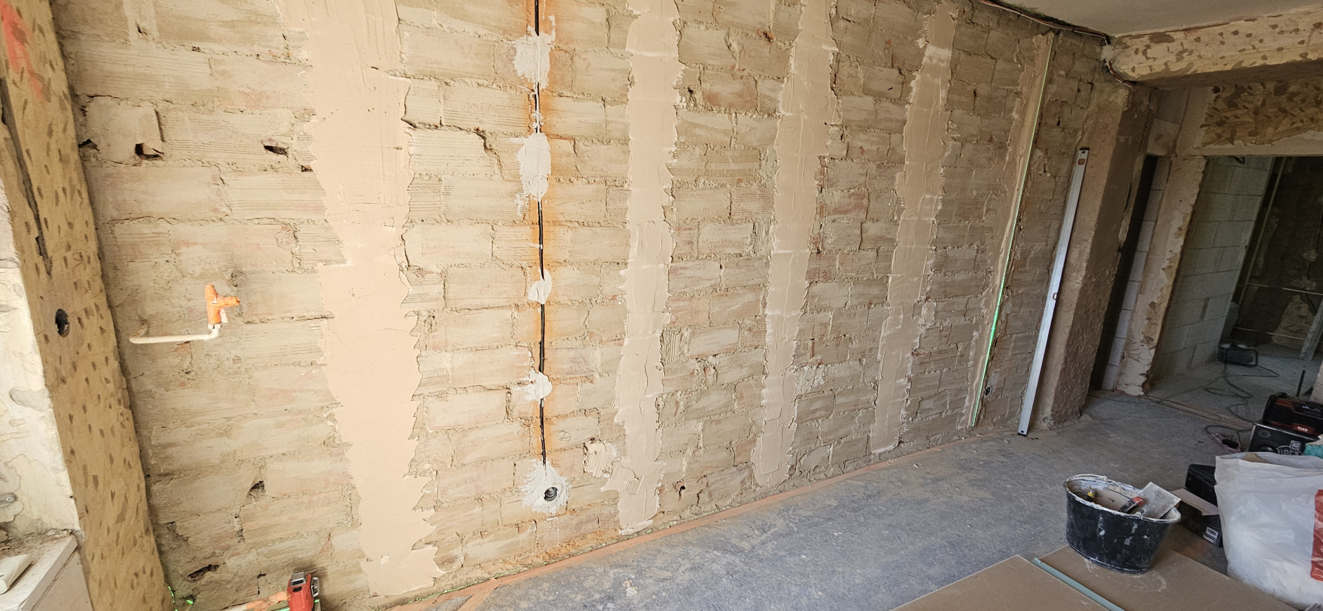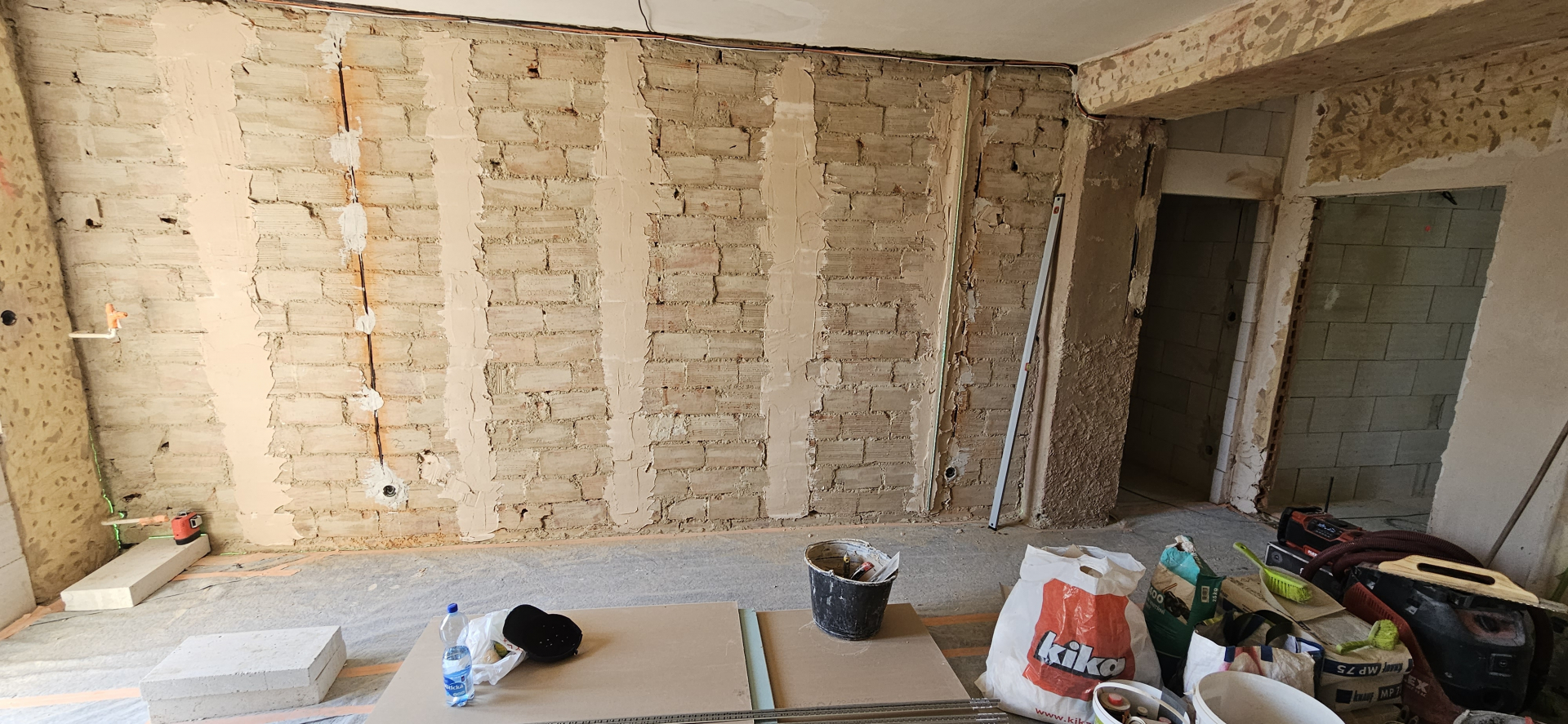 Rekonštrukcia bytu na Vodárenskej ulici v Košiciach.Pri tejto rekonštrukcii sa menila dispozícia bytu a realizovlali sme dekoračný "tehlový" obklad steny. Všetky Priebeh rekonštrukcie