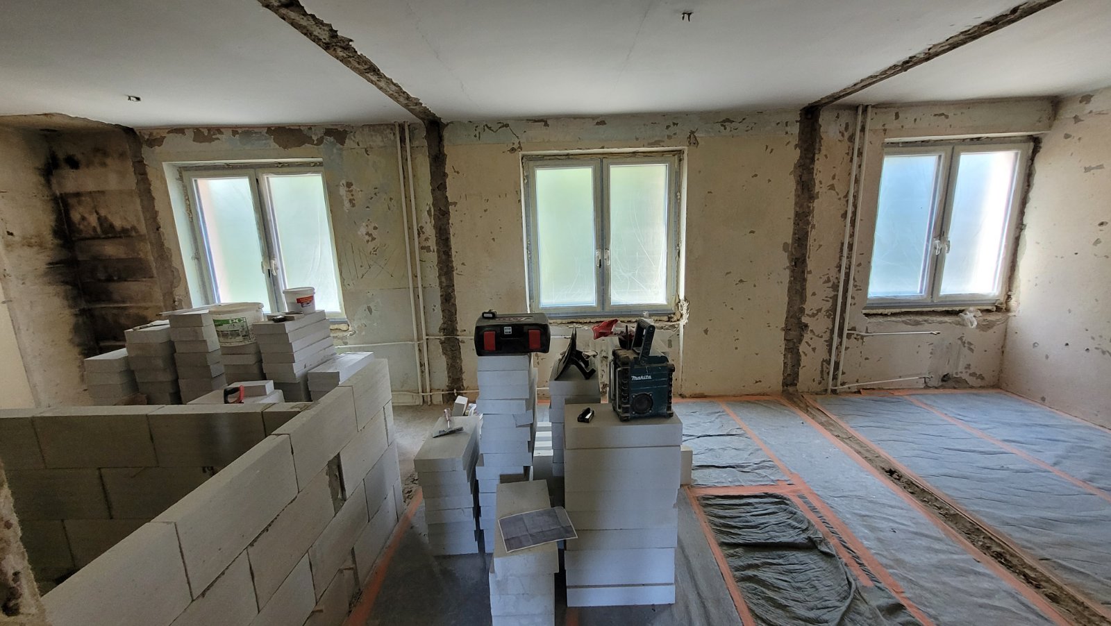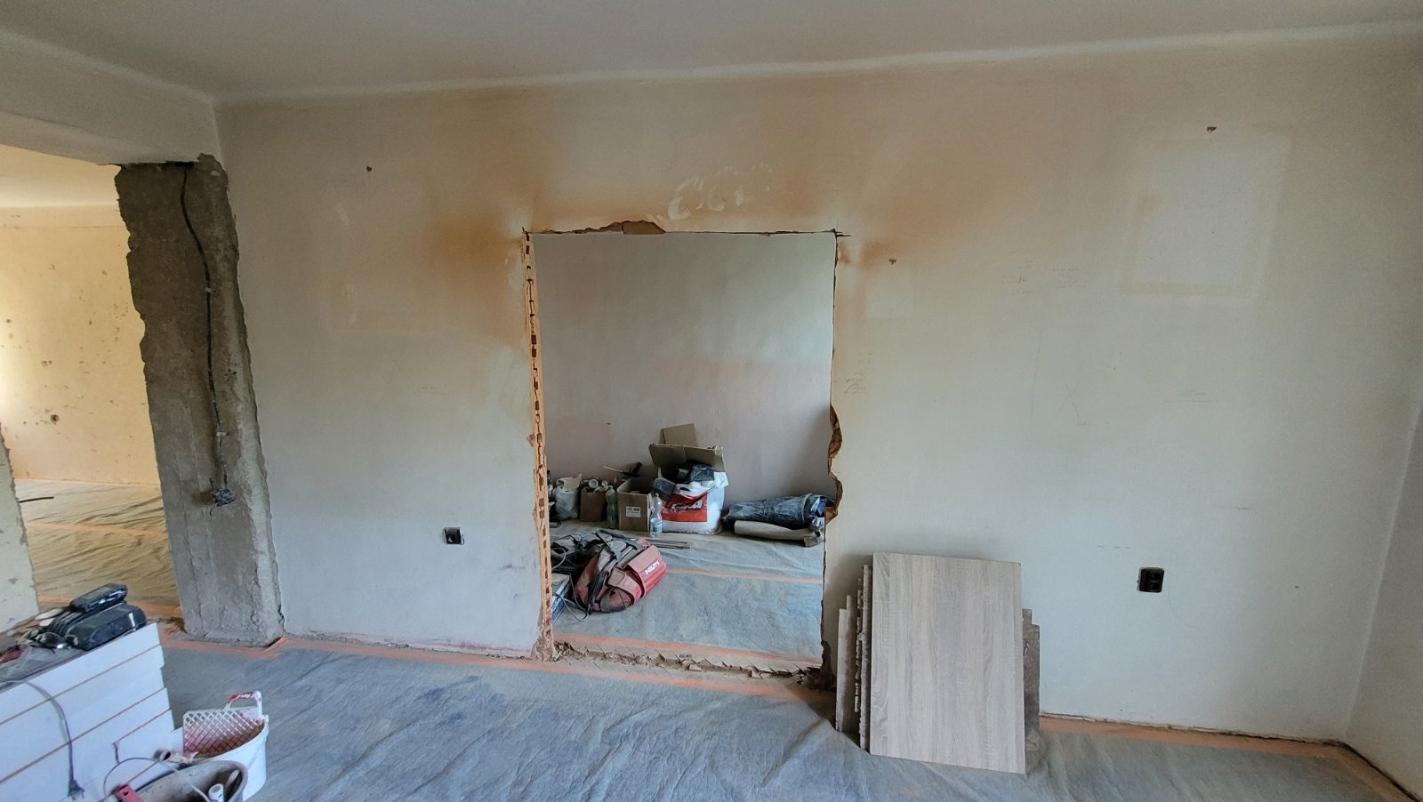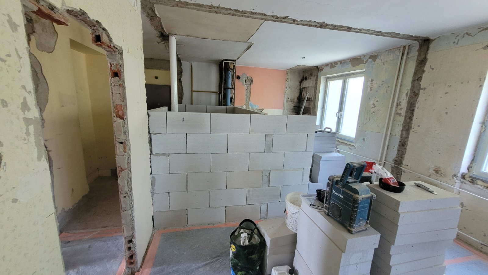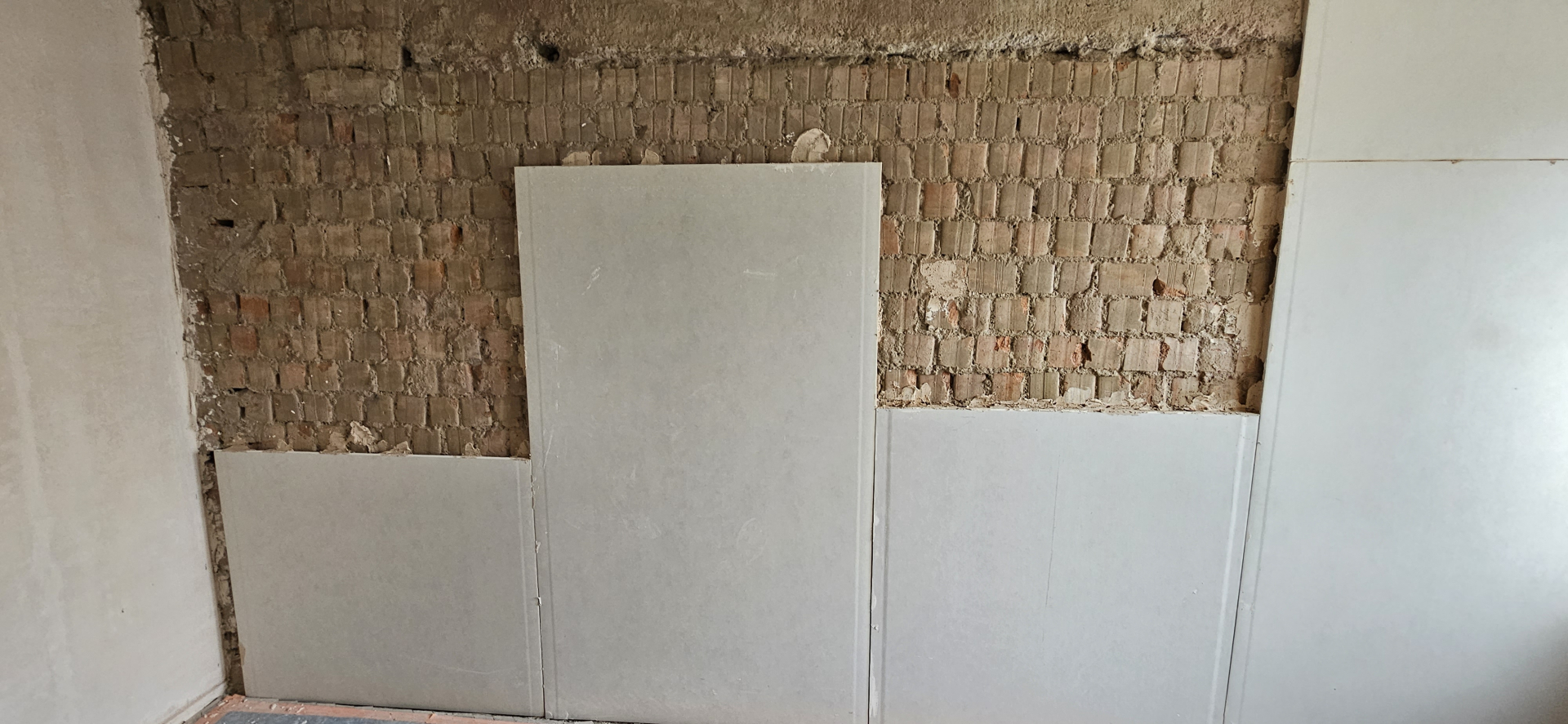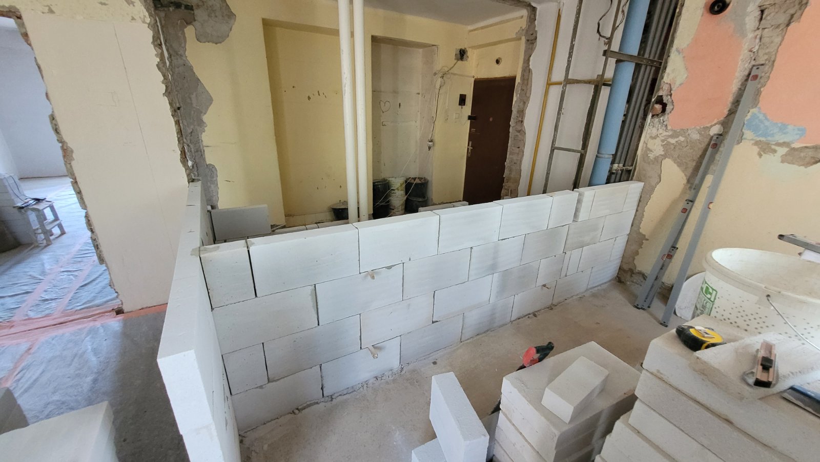 Rekonštrukcia bytu na Vodárenskej ulici v Košiciach.Pri tejto rekonštrukcii sa menila dispozícia bytu a realizovlali sme dekoračný "tehlový" obklad steny. Všetky Priebeh rekonštrukcie