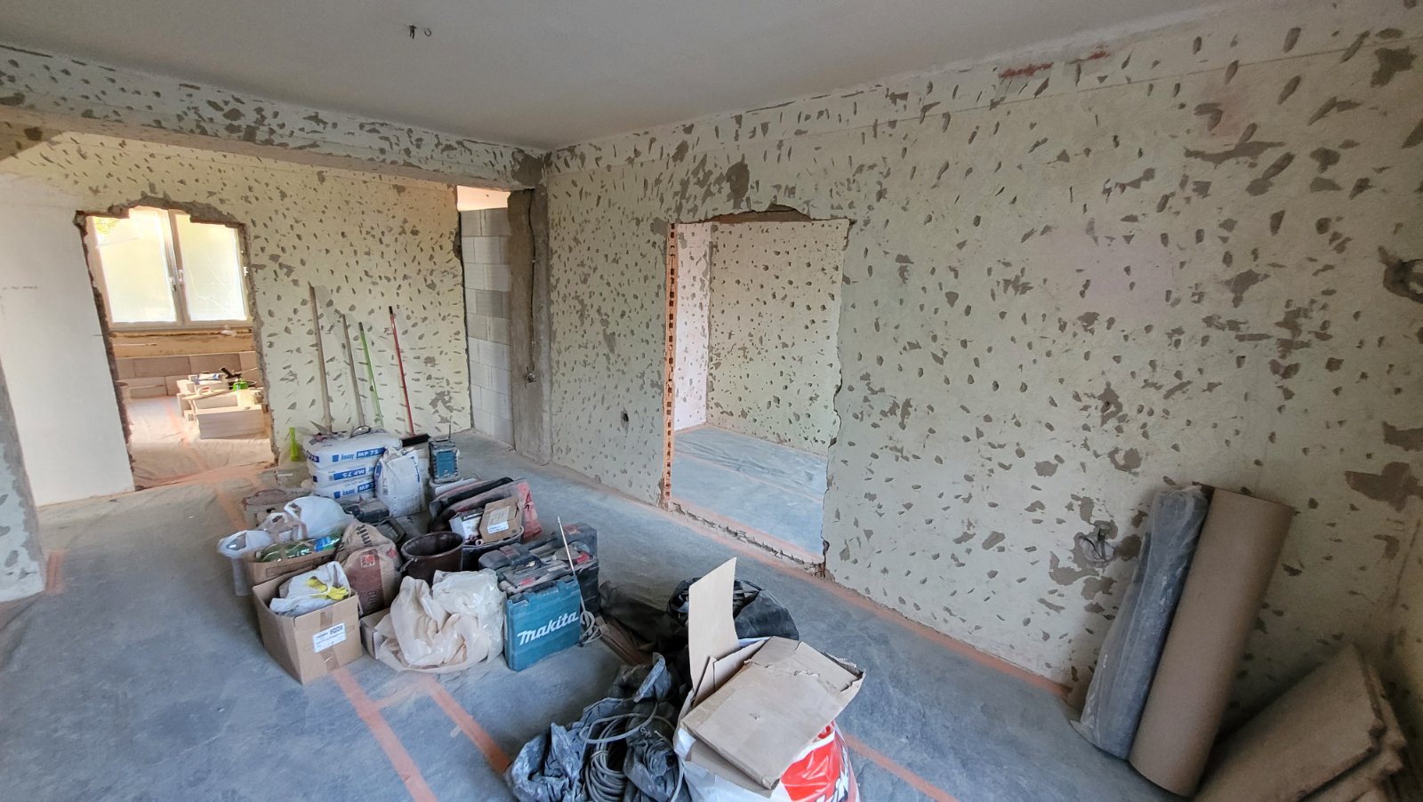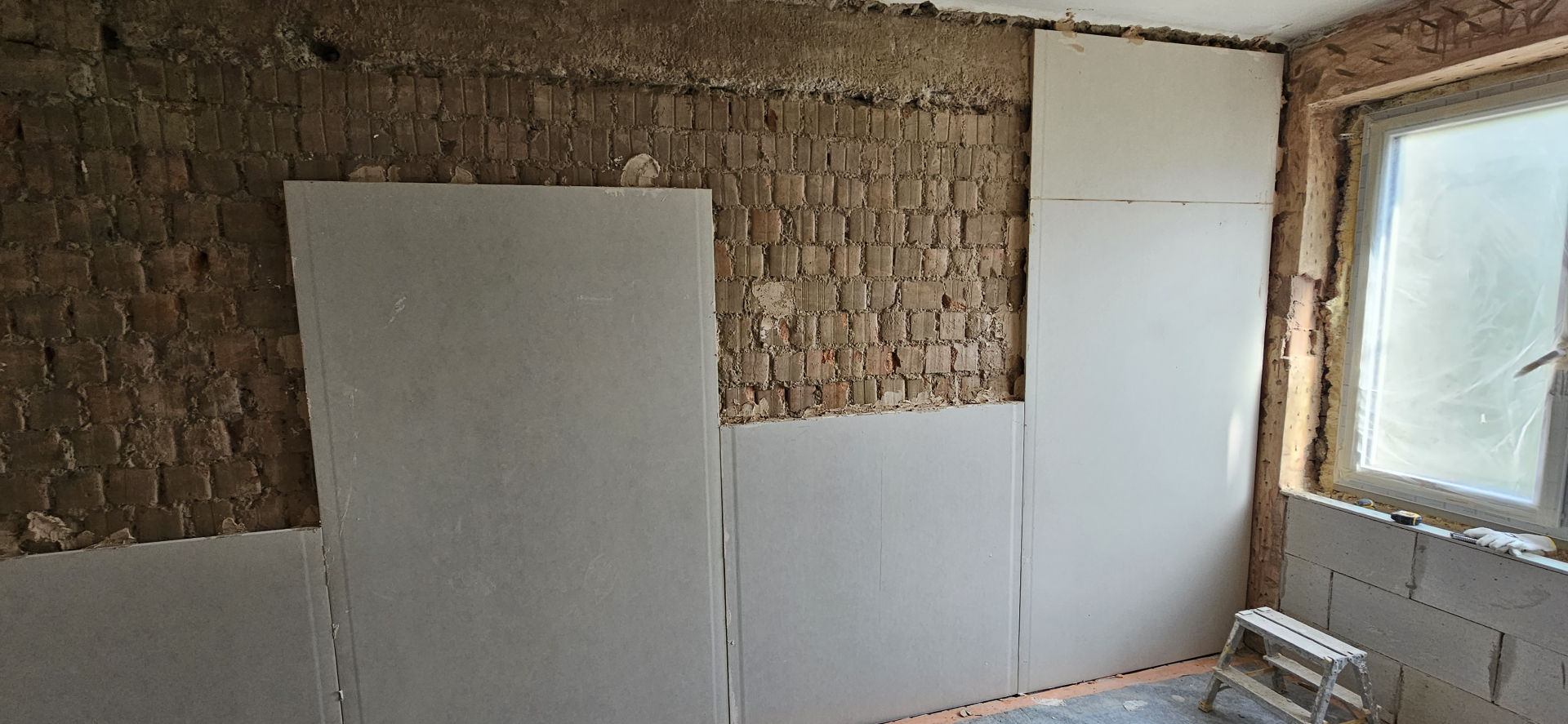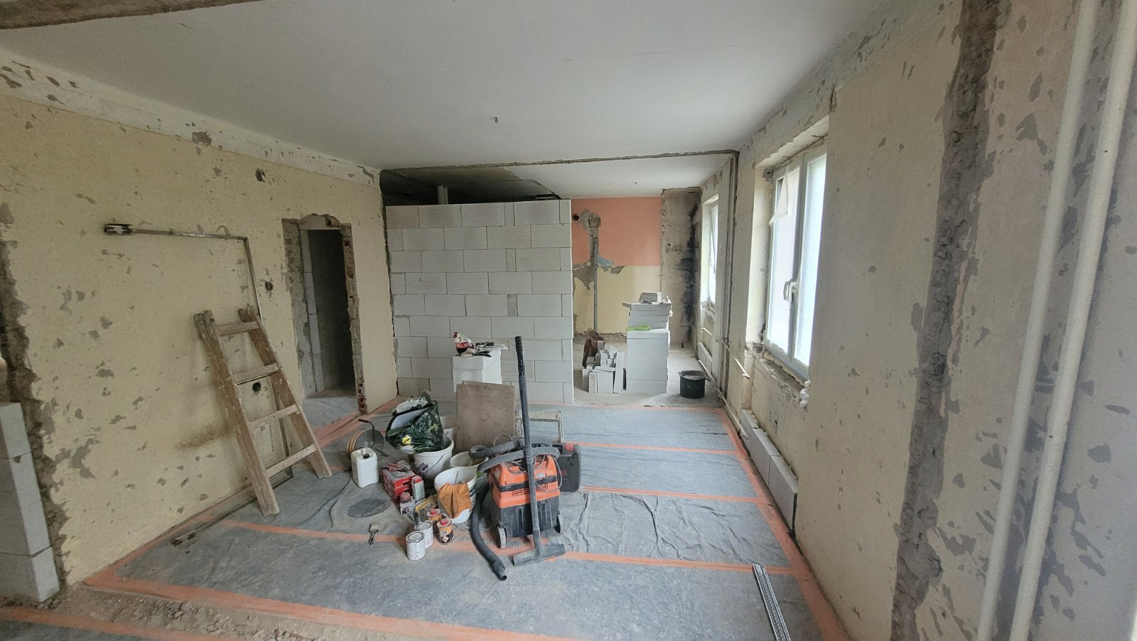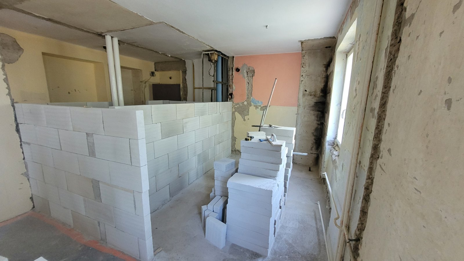 Rekonštrukcia bytu na Vodárenskej ulici v Košiciach.Pri tejto rekonštrukcii sa menila dispozícia bytu a realizovlali sme dekoračný "tehlový" obklad steny. Všetky Priebeh rekonštrukcie