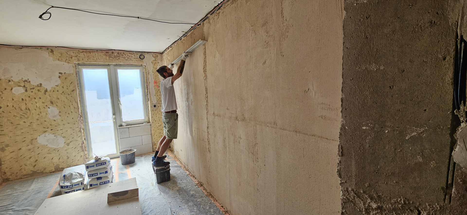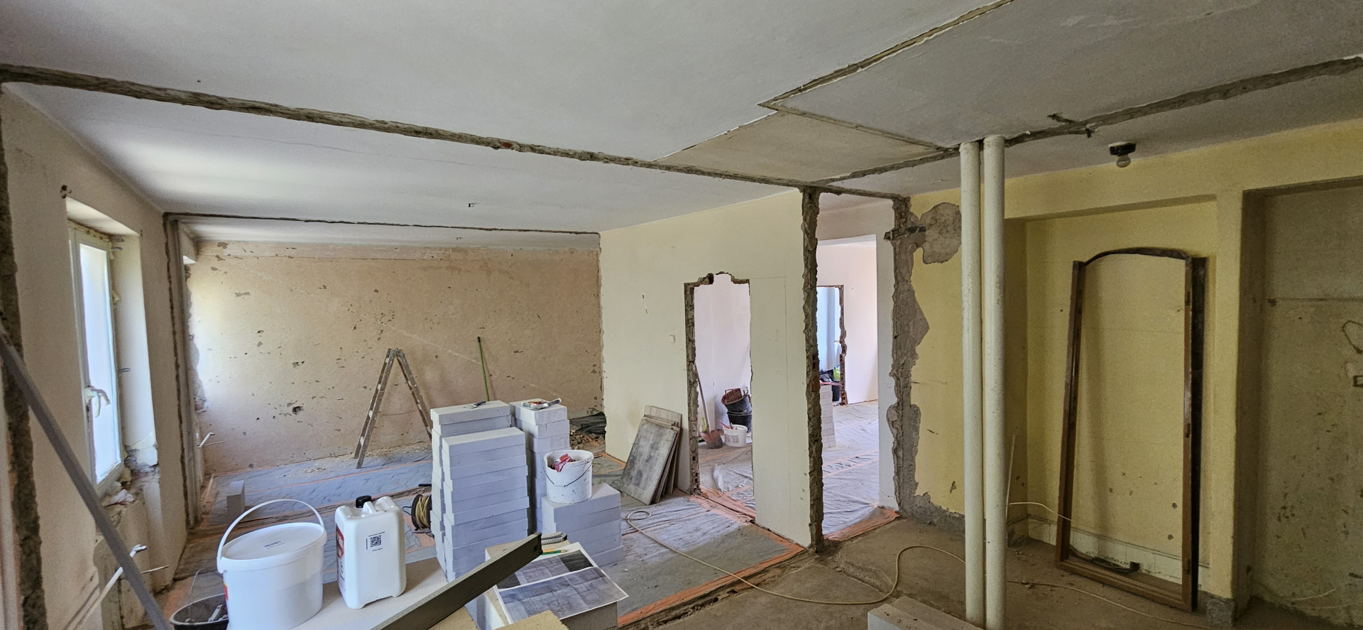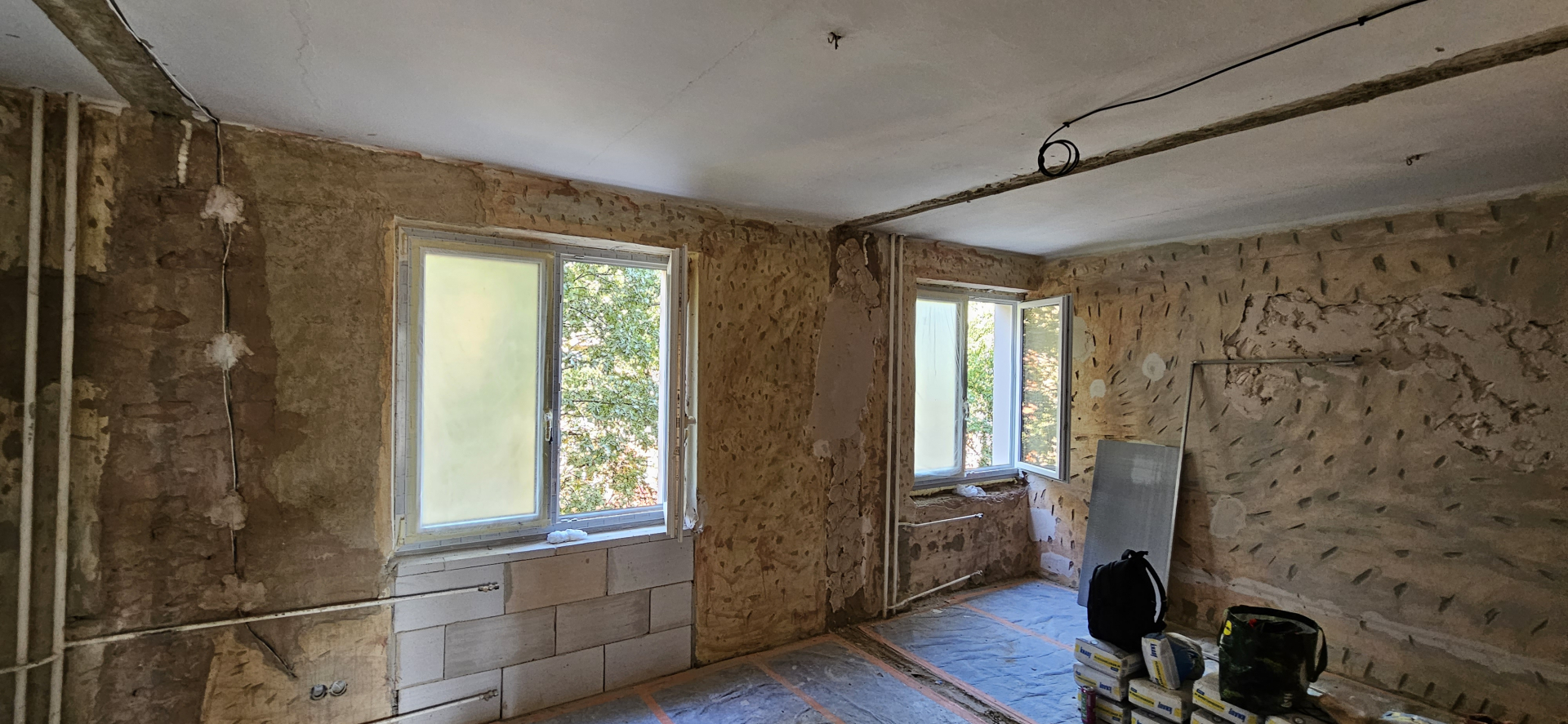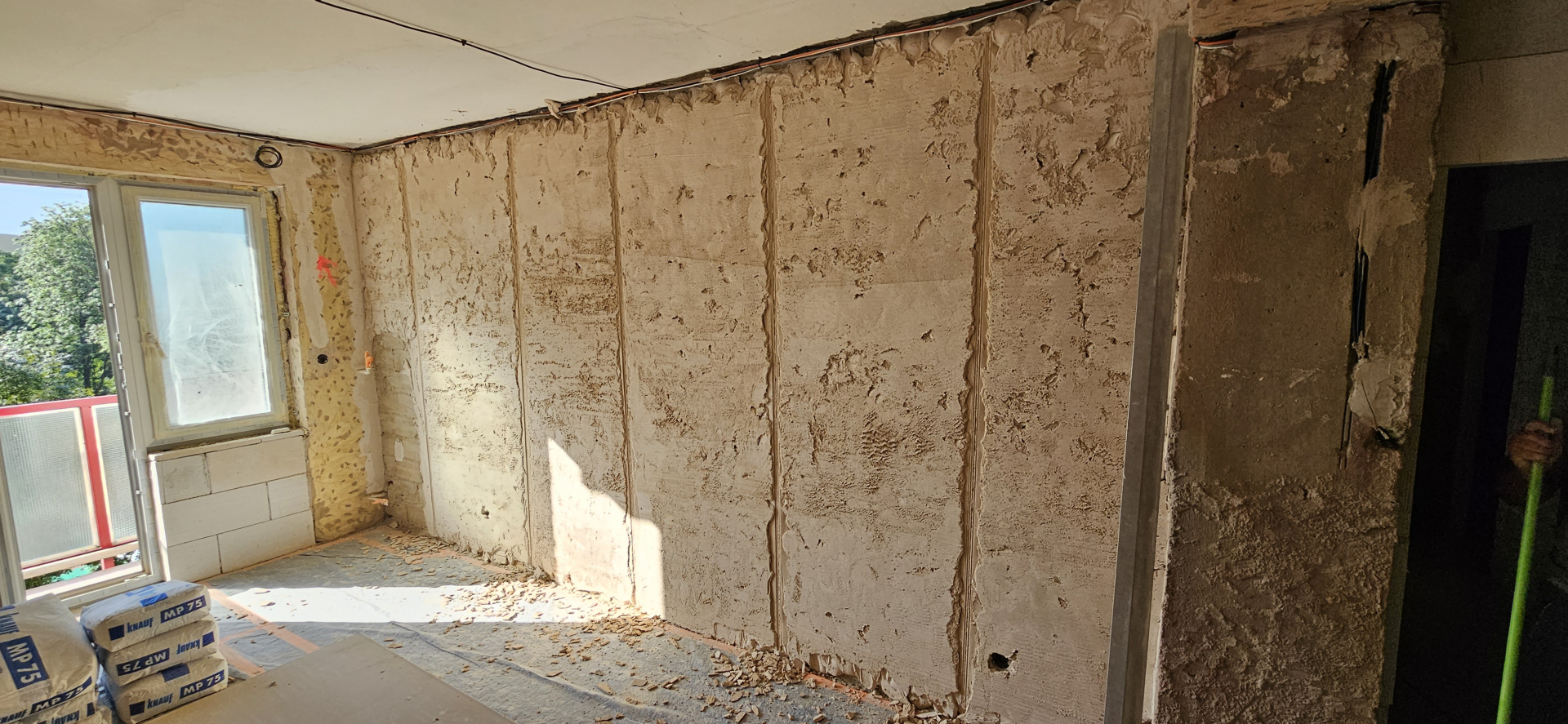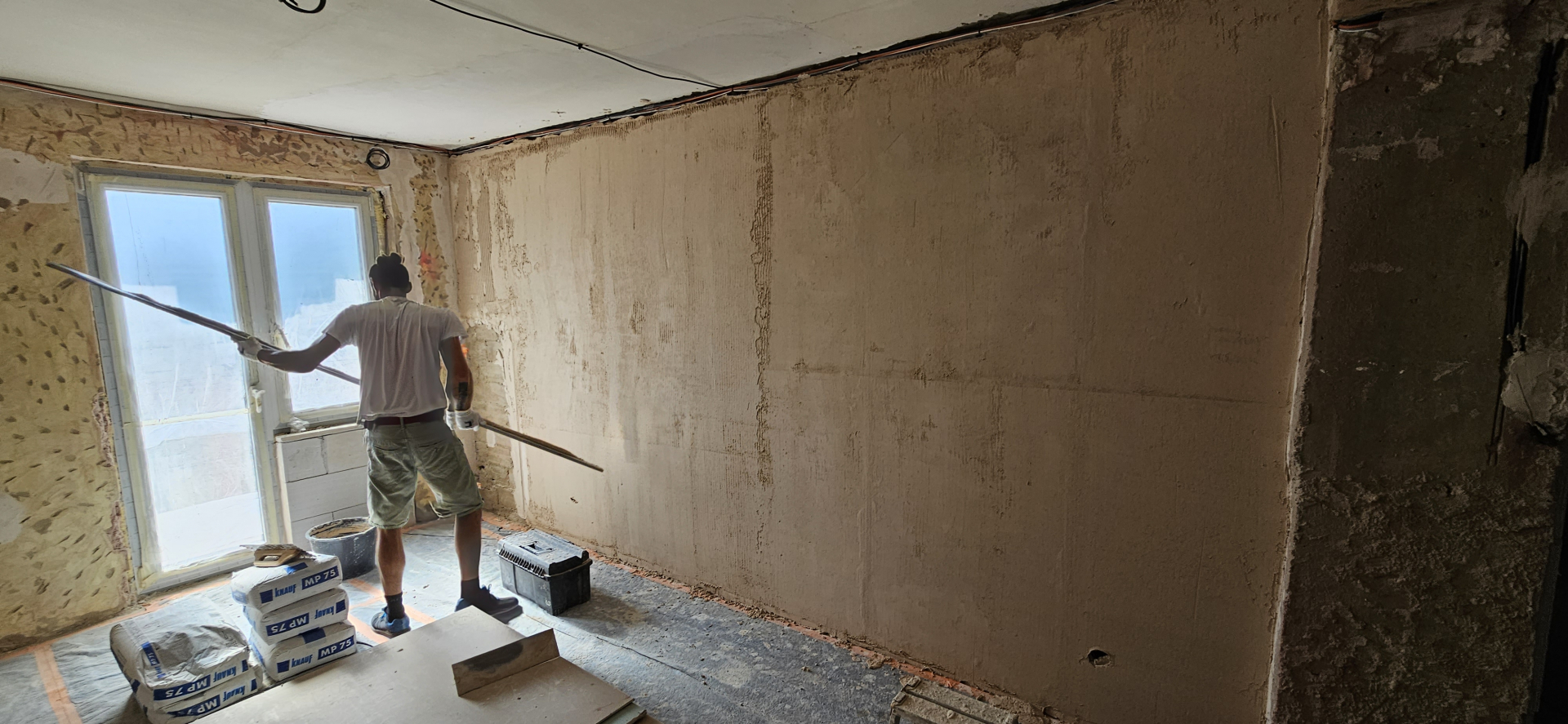 Rekonštrukcia bytu na Vodárenskej ulici v Košiciach.Pri tejto rekonštrukcii sa menila dispozícia bytu a realizovlali sme dekoračný "tehlový" obklad steny. Všetky Priebeh rekonštrukcie